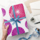 Este papel de embrulho tem uma design moderna do século médio de círculos roxos e cor-de-rosa com estrelas brancas, todas num campo de branco.