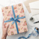 Retro Groovy Natal Holiday Rollerskates Wrapping Paper Gift Wrap apresenta um padrão divertido de feriados de natal de sinais de paz, patins, flocos de neve, presentes, flores, bonecos de neve, fitas de música retrô e canas doces em um fundo de pêssego. Perfeito para o presente de Natal para a família e os amigos. Projetado por feriados do Evco www.zazzle.com/store/evcoholidays
