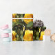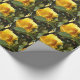 Uma rosa amarela nascendo à luz do sol cercada por folhas verdes
