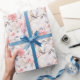 Papel de embrulho rosa asiático floral pássaro para eventos de presente elegante de outono.