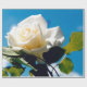 A rosa branca sob o céu azul. Foto vibrante de um belo rosa florescente faz um presente floral de excelente. A beleza calma da rosa branca reflete novos começos, pureza, lealdade e inocência. As rosas brancas simbolizam o amor jovem que a noiva tem por sua esposa. As rosas brancas também simbolizam a fundação de uma relação, e é por isso que são frequentemente vistas num dia de casamento. A rosa branca é uma flor de casamento tradicional. A rosa branca é uma flor adequada para celebrar um novo vínculo romântico e marital.