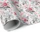Um padrão sem costura apresenta um intrincado design de florais e folhagem em tons de vermelho, rosa e cinza clássico de vintage toile country francês Fleurie