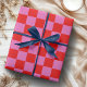 Papel De Presente Rosa Neon e Xadrez Vermelho Tabuleiro de Xadrez Vi