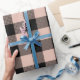 Papel De Presente Rosa Pastel Xadrez de Búfalo Rosado