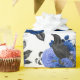 PAPEL INSPIRADO GÊTICO DE ENVOLVIMENTO COM CRUZAMENTOS NEGROS E AVES NOTURNOS E FLORES AZUIS REAIS UMA ideia clássica para seus natais vintages góticos!!