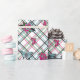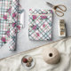 Este papel de embrulho tem uma rosa de tatuagem tradicional com borboletas de crânio na xadrez. Há três rosas diferentes e três borboletas diferentes no design. As borboletas têm pequenos crânios nas designs. Esta é a cinza rosa quente e azul. Você pode fazer o design neste papel de embalagem maior ou pequeno, seja avisado que este é um azulejo de meia gota.