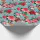 Papel De Presente Rosas de vindima e Florais num Fundo Azul