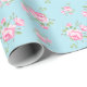 Papel De Presente Rosas florais clássicos clássicos azul claro