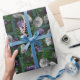 Este papel de embrulho tem um padrão floral elegante de rosas em rosas brancos e roxos numa relíquia de jardim sobre fundo preto. Você pode fazer o padrão nesse papel de embalagem maior ou menor, se quiser. Um adorável e elegante padrão de rosas florais que é excelente para plástico-presente para alguém que ama rosas ou flores.