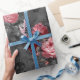Papel De Presente Rosas rosa e crânios em Cinzas