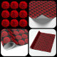 Um rolo vermelho profundo de papel embrulhado de rosas vermelhas clássicas sobre fundo preto. As imagens fotográficas de rosas são uma fotografia floral botânica original, da JLW_Photografia. Perfeito para um presente romântico para o Amor Verdadeiro ou para presentes de aniversário ou presentes de casamento.