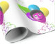Balões coloridos de aniversário com cabelo cacheado e olhos sobre um fundo branco.