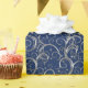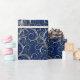 Papel de embrulho de presente de feriado mostrado com um rico bonito de espiral de tom de Prata impressão numa cor azul de fundo profunda. Escolha a cor do plano de fundo.