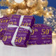 Este design de papel de embrulho apresenta uma mensagem como "FELIZ 50º ANIVERSÁRIO", com o "50º" a ter uma aparência falsa/imitação de ouro. Ele também apresenta um nome personalizável e um fundo de cor roxa. Talvez possa ser utilizada quando se dá presentes para o quinquagésimo aniversário de alguém. [~Z0000134]