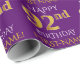 Papel De Presente Roxo, Dourado "FELIZ 92º ANIVERSÁRIO"