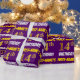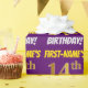 Este design de papel de embrulho apresenta uma mensagem como "PRIMEIRO NOME DO 14 DE ANIVERSÁRIO!", com o "14" a ter uma aparência falsa/imitada de cor dourada, e com o nome e "ANIVERSÁRIO" numa letra divertida e ousada. O nome pode ser personalizado e o fundo é roxo colorido. Um papel embrulhante como este poderia talvez ser usado no empacotamento de presentes de aniversário que são dados a alguém em comemoração do seu décimo quarto aniversário. [~Z0000206]