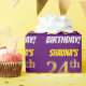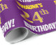 Este design de papel de embrulho apresenta uma mensagem como "SHAUNA'S 24th BIRTHDAY!", com o "24º" a ter uma aparência falsa/imitada de cor dourada, e com o nome e "BIRTHDAY" numa fonte divertida e ousada. O nome pode ser personalizado e o fundo é roxo colorido. Um papel de embrulho como este poderia talvez ser usado para embrulhar presentes de aniversário que são dados a alguém em comemoração do seu vigésimo quarto aniversário. [~Z0000206]
