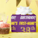 Este design de papel de empacotamento apresenta uma mensagem como "PRIMEIRO NOME É 38º ANIVERSÁRIO!", com o "38º" a ter uma aparência de cor falsa/imitação em forma de ouro, e com o nome e "ANIVERSÁRIO" numa fonte divertida e ousada. O nome é personalizável e o fundo é roxo colorido. Um papel de embrulho como este poderia talvez ser usado no embrulho de presentes de aniversário que são dados a alguém em comemoração de seus trinta e oito anos de aniversário. [~Z0000206]