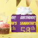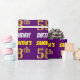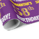 Este design de papel de embrulho apresenta uma mensagem como "SAMANTHA'S 58th BIRTHDAY!", com o "58º" a ter uma aparência falsa/imitada de cor dourada, e com o nome e "BIRTHDAY" numa fonte divertida e ousada. O nome pode ser personalizado e o fundo é roxo colorido. Um papel de embrulho como este poderia talvez ser usado para embrulhar presentes de aniversário que são dados a alguém em comemoração de seus cinquenta oitavos anos. [~Z0000206]