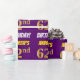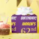 Este design de papel de embrulho apresenta uma mensagem como "ANDREW'S 62nd BIRTHDAY!", com o "62º" a ter uma aparência falsa/imitada de cor dourada, e com o nome e "BIRTHDAY" numa fonte divertida e ousada. O nome pode ser personalizado e o fundo é roxo colorido. Um papel de embrulho como este poderia talvez ser usado para embrulhar presentes de aniversário que são dados a alguém em comemoração do seu sessenta e segundo aniversário. [~Z0000206]