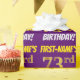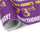 Este design de papel de empacotamento apresenta uma mensagem como "PRIMEIRO NOME'S 73rd BIRTHDAY!", com o "73º" a ter uma aparência de cor falsa/imitada em forma de ouro, e com o nome e "BIRTHDAY" numa fonte divertida e ousada. O nome é personalizável e o fundo é roxo colorido. Um papel de embrulho como este poderia talvez ser usado no embrulho de presentes de aniversário que são dados a alguém em comemoração de seus setenta e três anos. [~Z0000206]