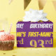 Este design de papel de empacotamento apresenta uma mensagem como "PRIMEIRO NOME DO 93º ANIVERSÁRIO!", com o "93º" a ter uma aparência falsa/imitada de cor dourada, e com o nome e "ANIVERSÁRIO" numa fonte divertida e ousada. O nome é personalizável e o fundo é roxo colorido. Um papel de embrulho como este poderia talvez ser usado no embrulho de presentes de aniversário que são dados a alguém em comemoração de seu 93º aniversário. [~Z0000206]