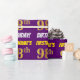 Este design de papel de embrulho apresenta uma mensagem como "FIRSTNAME'S 98th BIRTHDAY!", com o "98º" a ter uma aparência falsa/imitada de cor dourada, e com o nome e "BIRTHDAY" numa fonte divertida e ousada. O nome pode ser personalizado, e o fundo é roxo colorido. Um papel de embrulho como este poderia talvez ser usado no embrulho de presentes de aniversário que são dados a alguém em comemoração de seus 98 anos de aniversário. [~Z0000206]