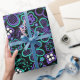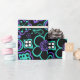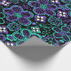 Papel de envolvimento roxo do verde floral Funky do preto do teste padrão do fulgor 90s. Flores pretas do fundo, as verdes e as roxas. Designs florais Funky. www.SamAnnDesigns.com