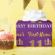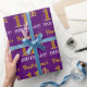 Este design de papel de embrulho apresenta uma mensagem como "First-Name’s 11 BIRTHDAY!", com o "11" a ter uma aparência falsa/de cor dourada. O nome pode ser personalizado, e o fundo é roxo colorido. Talvez possa ser utilizada quando se dá presentes para o décimo primeiro aniversário de alguém. [~Z0000182]