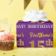 Este design de papel de embrulho apresenta uma mensagem como "FirstName’s 15 BIRTHDAY!", com o "15" a ter uma aparência de cor falsa/imitada em ouro. O nome pode ser personalizado e o fundo é roxo colorido. Talvez possa ser utilizada quando se dá presentes para o décimo quinto aniversário de alguém. [~Z0000182]