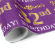 Este design de papel de embrulho apresenta uma mensagem como "FirstName’s 32nd BIRTHDAY!", com o "32º" a ter uma aparência falsa/de cor dourada. O nome pode ser personalizado, e o fundo é roxo colorido. Talvez possa ser utilizada quando se dá presentes para o trigésimo segundo aniversário de alguém. [~Z0000182]