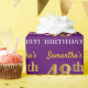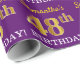 Este design de papel de embrulho apresenta uma mensagem como "Samantha's 48th BIRTHDAY!", com o "48º" a ter uma aparência falsa/imitada de cor dourada. O nome pode ser personalizado e o fundo é roxo colorido. Talvez possa ser utilizado quando se dá presentes para o quadragésimo oitavo aniversário de alguém. [~Z0000182]
