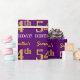 Este design de papel de embrulho apresenta uma mensagem como "54º ANIVERSÁRIO DE Samantha!", com o "54º" a ter uma aparência falsa e imitada de cor dourada. O nome pode ser personalizado, e o fundo é roxo colorido. Talvez possa ser utilizado quando se dá presentes para o cinquenta e quarto aniversário de alguém. [~Z0000182]