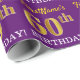 Este design de papel de embrulho apresenta uma mensagem como "FirstName’s 60th BIRTHDAY!", com o "60º" a ter uma aparência falsa/de cor dourada. O nome pode ser personalizado e o fundo é roxo colorido. Talvez possa ser utilizada quando se dá presentes para o sexagésimo aniversário de alguém. [~Z0000182]
