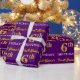 Este design de papel de embrulho apresenta uma mensagem como "First-Name’s 6 BIRTHDAY!", com o "6" a ter uma aparência falsa/de cor dourada. O nome pode ser personalizado, e o fundo é roxo colorido. Talvez possa ser utilizada quando se dá presentes para o sexto aniversário de alguém. [~Z0000182]