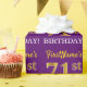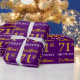 Este design de papel de embrulho apresenta uma mensagem como "FirstName’s 71rua BIRTHDAY!", com a "71ruas" a ter uma aparência falsa e imitada de cor dourada. O nome pode ser personalizado e o fundo é roxo colorido. Talvez possa ser utilizado quando se dá presentes para o 71º aniversário de alguém. [~Z0000182]
