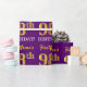Este design de papel de embrulho apresenta uma mensagem como "FirstName’s 98th BIRTHDAY!", com o "98º" a ter uma aparência falsa/de cor dourada. O nome pode ser personalizado e o fundo é roxo colorido. Talvez possa ser utilizado quando se dá presentes para o oitavo aniversário de alguém. [~Z0000182]