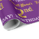 Este design de papel de embrulho apresenta uma mensagem como "segundo aniversário do Primeiro Nome!", com o "segundo" a ter uma aparência falsa/de cor dourada. O nome pode ser personalizado, e o fundo é roxo colorido. Talvez possa ser utilizado quando se trata de embrulhar presentes para o segundo aniversário de alguém. [~Z0000182]