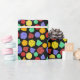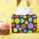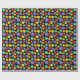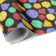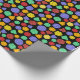 Este papel colorido de empacotamento é perfeito para embrulhar presentes para fãs de jogos de papel e conselhos de fantasia. Ele apresenta ilustrações de diferentes dados multilaterais em um cenário verde, roxo, laranja, vermelho e amarelo em um fundo preto.