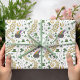Esta Rua caprichosa desenhada à mão. O papel de embrulho do Dia de Patrick apresenta várias imagens irlandesas icônicas, incluindo trevos verdes, moedas de ouro de shamrock, um pote de ouro no final de um arco-íris, um chapéu de duende, cogumelos verdes, corações verdes e a bênção irlandesa, "Desejando-vos sorte e alegria!". Tudo em um padrão curvado divertido.