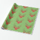 Uma rena adorável com um nariz vermelho brilhante sobre um fundo verde.