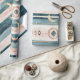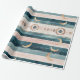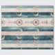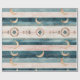 Rustic celestial stripe pattern wrapping paper featuring moon phases, sun symbols, and tribal-inspired details in earthy teal and clay tones. A calm, grounding design ideal for boho lovers, spiritual creatives, and nature-inspired interiors. A thoughtful gift for moon watchers, astrology fans, and earthy souls.