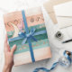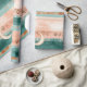 Rustic celestial stripe pattern wrapping paper featuring moon phases, sun symbols, and tribal-inspired details in earthy teal and clay tones. A calm, grounding design ideal for boho lovers, spiritual creatives, and nature-inspired interiors. A thoughtful gift for moon watchers, astrology fans, and earthy souls.