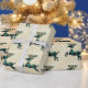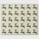 Padrão de veados de xadrez, russos, com boho, cones de pinho verde e agulhas de pinho em choro com fita de ouro ao redor do pescoço. Dourado fundo de fêmur.