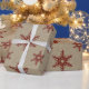 Papel De Presente Rustic Faux Burlap e Red Snowflake Padrão