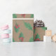 Um papel de embalagem de férias Kraft, com folhas sagradas pintadas a aquarelas e bagas sagradas vermelhas, com um padrão de repetição aleatório.