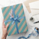Papel De Presente Rustic Kraft Dusty Teal Green Stripe Feriado em Gr