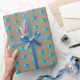 Papel De Presente Rustic Kraft Turquoise Blue Stars Wraping Paper