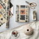 Earthy geometric pattern wrapping paper inspired by tribal mudcloth textiles, featuring hand-painted rectangles, diamonds, and triangles in charcoal black and terracotta on a textured beige background. A warm boho design ideal for rustic décor lovers, artisan style fans, and anyone drawn to earthy geometric aesthetics.