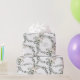 Um eucalipto verde sábio com rosa de escova e flores brancas papel de embrulho de casamento com as palavras, "Parabéns" e os nomes da noiva e noiva com a data numérica do casamento escrito neste papel de embrulho.